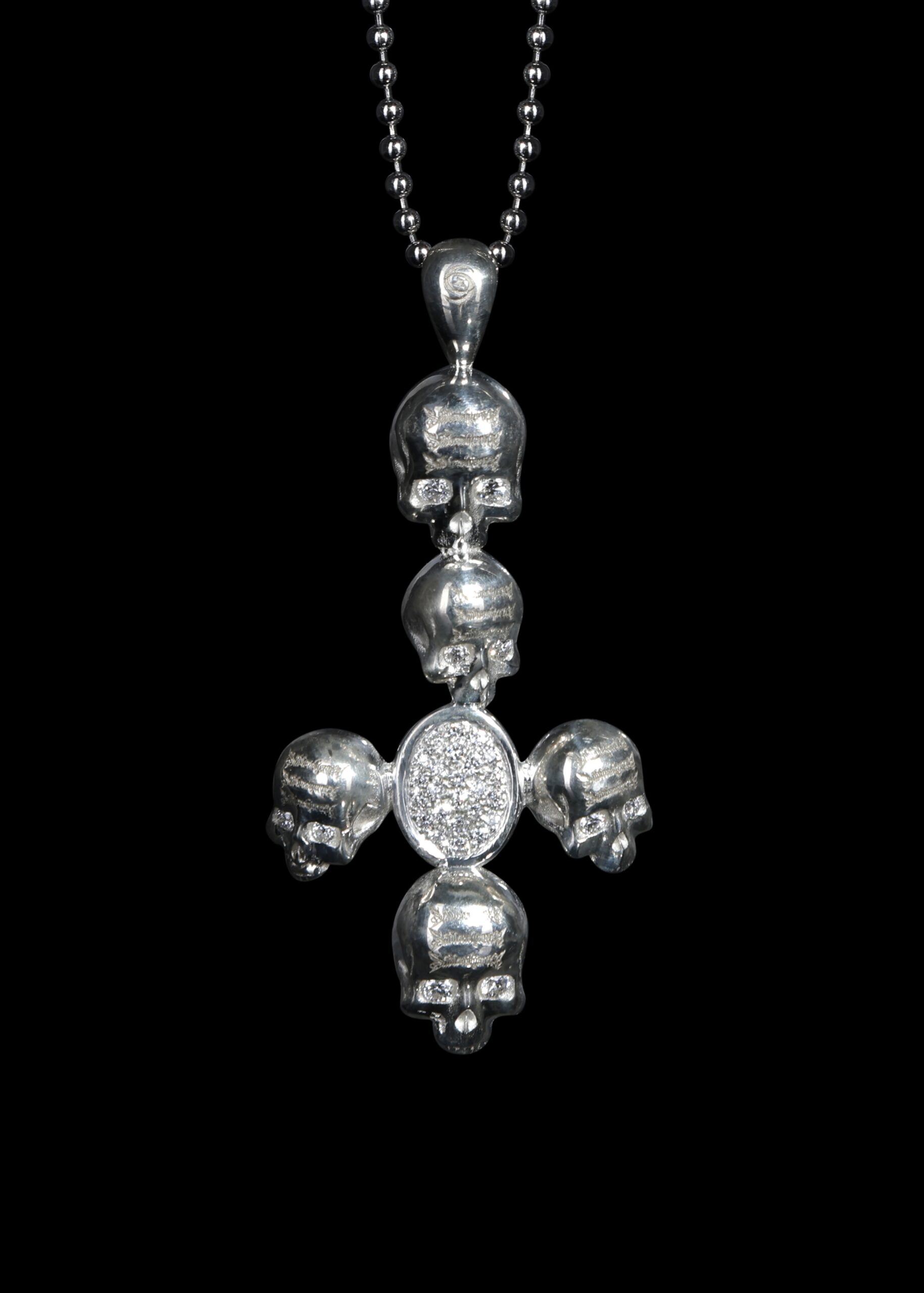 – Each skull features a unique angle, with eyes set with natural genuine diamonds, and the center adorned with 24 pavé-set natural diamonds.