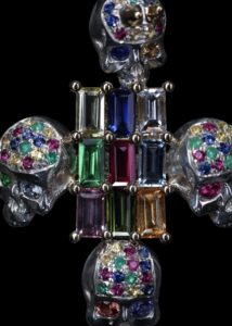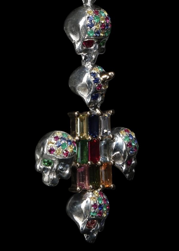 · Crafted from 925 Sterling Silver. The demon horns on the skulls and the central gemstone cluster setting are made of 18K Gold.